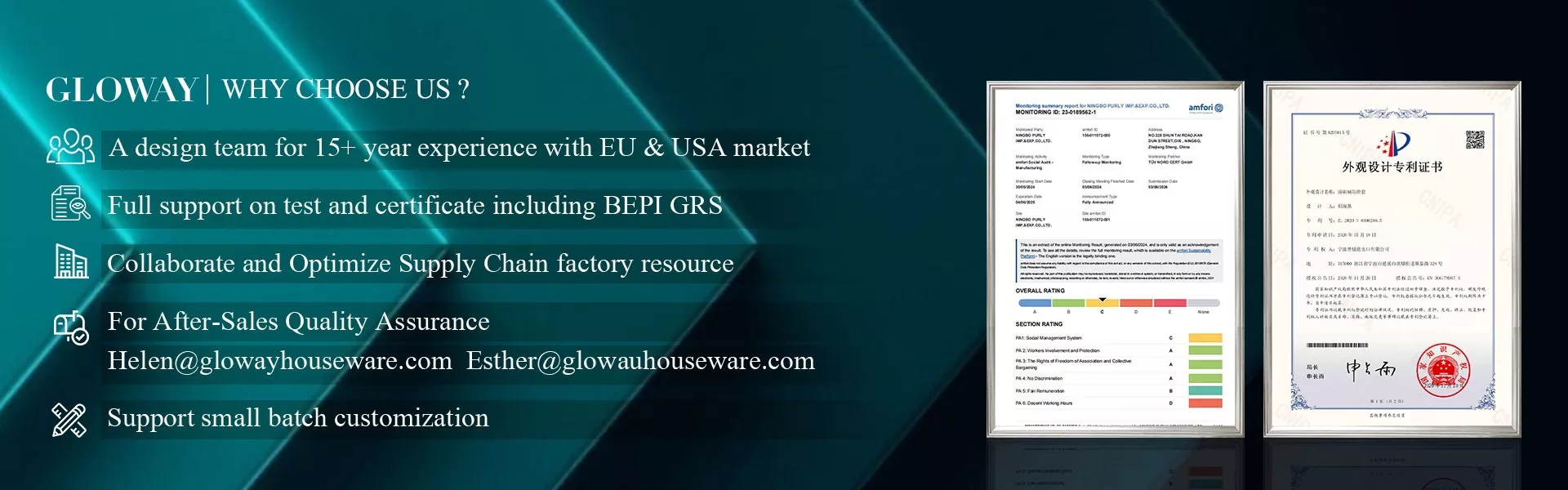 Ningbo Purly Imp. & Exp. Co., Ltd. on Ningbossa nauttimaan hyvästä vientiympäristöstä ja kätevästä liikenteestä Ningbo Sea Portiin. Laitospinta -ala on 3000 m² ja I S O 9 0 0 1 ja B S C I -sertifikaatti, voimme täyttää kaikki tarvitsemasi tehdastarkastusvaatimukset.